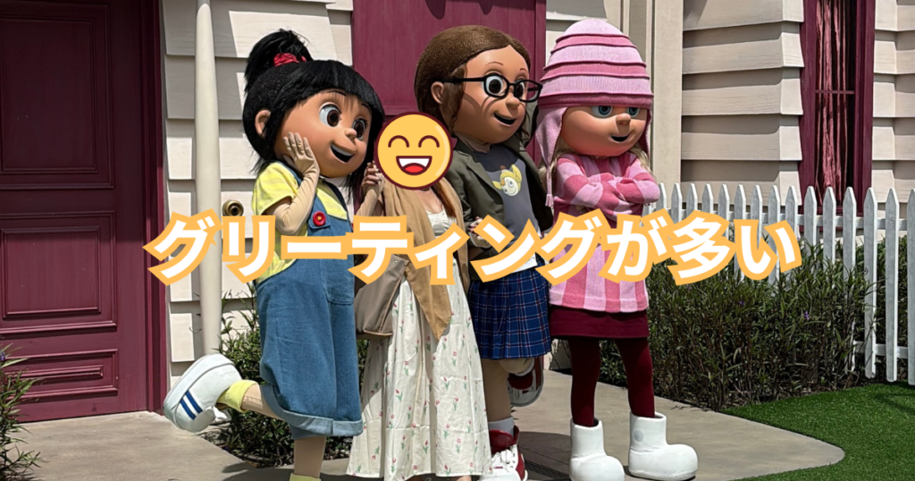 - キャラクターグリーティングが多く、海外パークならではの雰囲気を味わえる